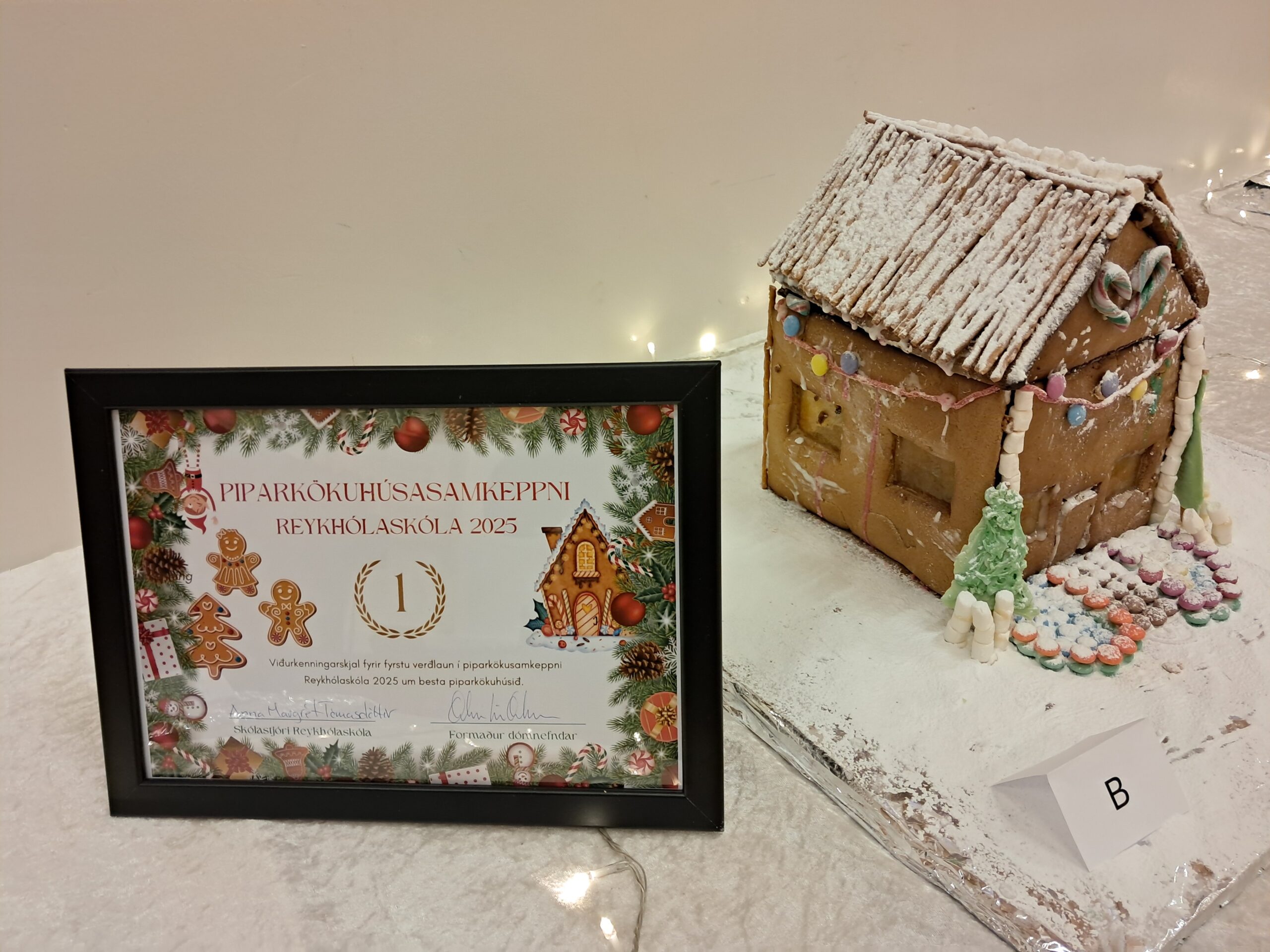 Á fullveldishátíðinni voru úrslit piparkökuhúsasamkeppni Reykhólaskóla kunngerð. Alls voru sex hús í keppninni sem nemendur á mið- og elsta stigi bjuggu til og lögðu til keppninnar. Í dómnefnd keppninnar sátu Óli sveitarstjóri, Rebekka frá Stað og fjöllistakonan Þórdís sem er væntanlegur kennari við skólann eftir áramót. Veitt voru verðlaun fyrir fyrstu þrjú sætin í keppninni um besta piparkökuhús ársins í Reykhólaskóla.